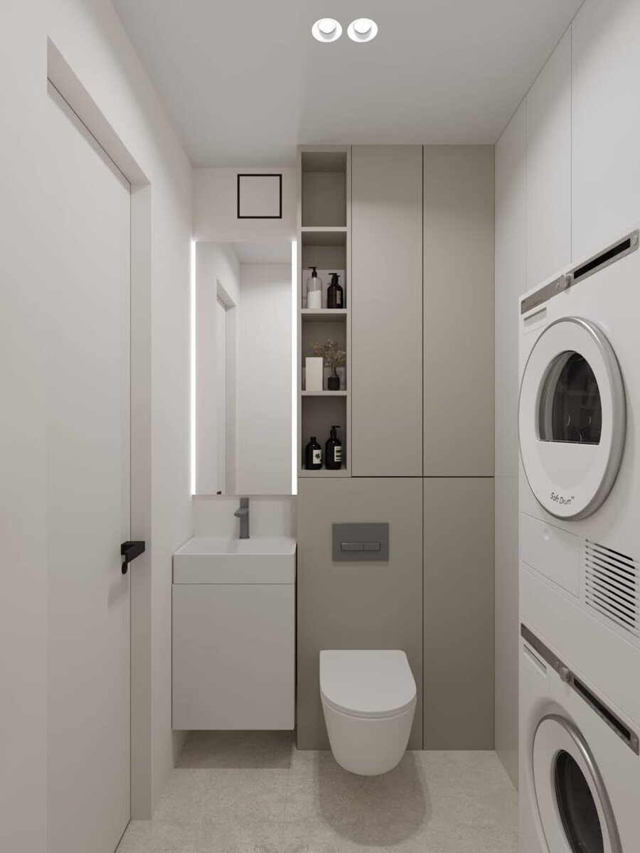 В нашем новом проекте г.Новороссийск есть гостевой санузел, в котором мы расположили и постирочную