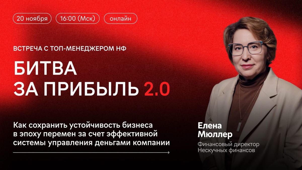 🟥🟥🟥🟥🟥🟥🟥 ЭКСКЛЮЗИВНАЯ ВСТРЕЧА С ТОП-МЕНЕДЖЕРОМ НФ 2025 год: многие бизнесы просели, и Нескучные тоже, но за 2 месяца компании удалось сломить тренд падения 📈 Александр Афанасьев уже поделился антикризисным планом, а что в этот момент происходило внутри бизнеса — скоро расскажет финдир НФ Елена Мюллер. 🗺 20 ноября, в 16:00 по Москве Именно она вместе с основателями вытаскивала компанию из кризиса и знает, как работает устойчивая финансовая система изнутри 💪 Что будет на встрече: 1️⃣ План действий: как управлять деньгами и почему оптимизация расходов может не дать эффект. Это реальный кейс Нескучных Финансов! 2️⃣ Принципы здорового взаимодействия «финдир — собственник». В чем суть роли финансового директора, как он помогает принимать решения и за что не может взять ответственность. 3️⃣ Экскурсия в финансовый департамент 💰. Как устроена система, которая пережила три кризиса, и что должно быть внедрено у вас, чтобы бизнес устойчиво развивался в 2026 году. Забронируйте ме