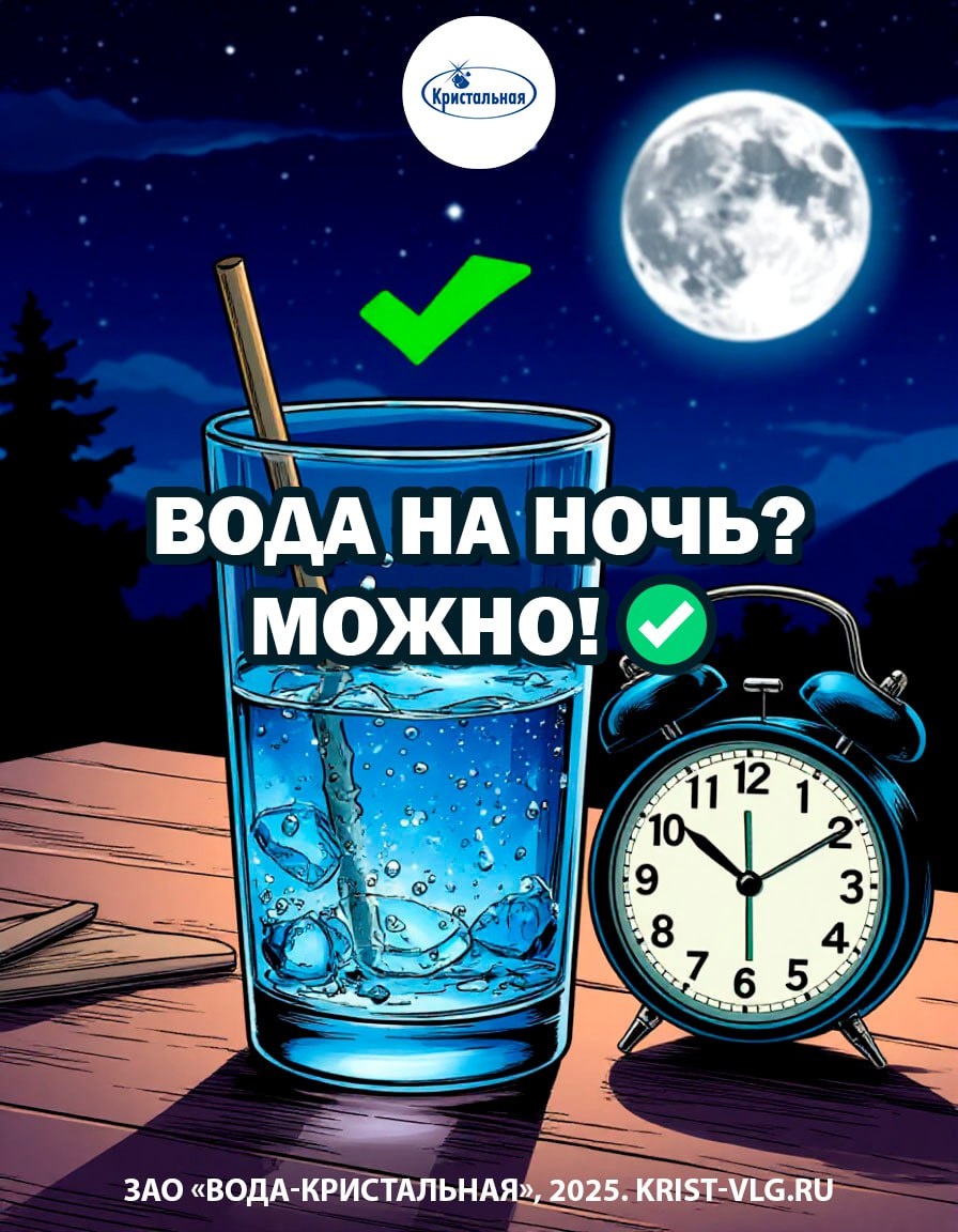 💧 РАЗРУШИТЕЛИ ВОДНЫХ МИФОВ #3: "Пить воду на ночь вредно" Миф, который заставляет терпеть жажду. Разбираем. ❌ МИФ: Пить воду перед сном нельзя. Будут отёки, нагрузка на почки, бессонница. ✅ РЕАЛЬНОСТЬ: Пить можно. Главное - не литрами. Стакан воды за час до сна - норма. 🤓 ПОЧЕМУ: Отёки возникают не от воды, а от задержки жидкости из-за соли, алкоголя, гормонов. Если организм здоров, то и вода выведется нормально. Почки работают 24/7. Им не нужен "отдых от воды". Если ты не выпьешь 5 литров за час до сна, то всё будет ок. ⚠️ Когда опасно: Проблемы с почками, сердцем, отёчность. В этих случаях лучше посоветоваться с врачом. Вывод: Хочешь пить на ночь - пей. Не хочешь - не пей. Организм сам знает. 💧 "ВОДА-КРИСТАЛЬНАЯ" - 330₽ за 18,9л. Пей когда хочешь: утром, днём, ночью. Главное - пей. P.S. Если терпишь жажду из-за мифа про отёки - поздравляю, ты обезвоживаешь себя добровольно.
