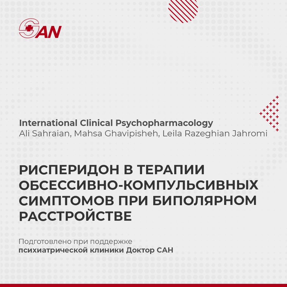 В International Clinical Psychopharmacology опубликованы результаты рандомизированного контролируемого испытания добавления рисперидона к терапии у пациентов с биполярным расстройством (в эутимии) и сопутствующими обсессивно-компульсивными симптомами. Через 12 недель средний балл по обсессивно-компульсивной шкале Йеля-Брауна (Y-BOCS) в группе рисперидона достоверно снизился по сравнению с плацебо. Процент респондёров (снижение Y-BOCS ≥ 35 %) составил 95,2 % (20/21) в группе рисперидона против 47,6 % (10/21) в группе плацебо. Лечение было хорошо переносимо, серьёзных побочных явлений не зарегистрировано. Подробнее о биполярном расстройстве: https://doctorsan.ru/lechenie-bipolyarnogo-rasstroystva