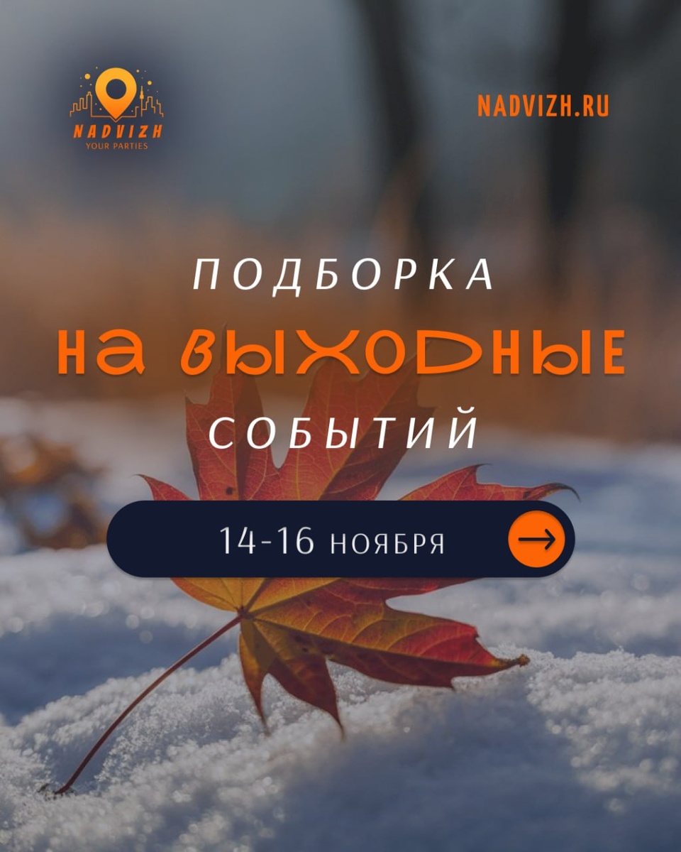 🍂 Жаркие события для осенних дней 🍂 👀От мощных ритмов в ангаре старого аэропорта до зрелищных боёв в окружении ревущих моторов — готовимся к незабываемым выходным! 🔥 С 14 по 16 ноября — только самые громкие события от NaDvizh.ru 👇 🥋 ФЕСТИВАЛЬ БОЕВЫХ ИСКУССТВ: битва титанов! 📍 Где: ЛДС «Сибирь» 📅 Когда: 14-16 ноября 🎟 Вход: Свободный Три дня адреналина! 10+ боевых дисциплин: от грации ушу до мощи панкратиона. Увидите зрелищные поединки и мастер-классы чемпионов! 🥊 📅 СУББОТА, 15 НОЯБРЯ 🎵 SUPERFLY FEST: музыкальный взлёт! 📍 Где: Старый аэропорт 🕘 Время: 21:00 - 05:00 🎟 Вход: 1900 ₽ Грандиозный фестиваль в уникальной локации! Две сцены, топовые диджеи, арт-инсталляции и ночной маркет. Готовьтесь к полёту! 🚀 🐾 ДЕНЬ ХВОСТА: подари дом пушистому другу! 📍 Где: ТЦ МЕГА 🕛 Время: 12:00 - 18:00 🎟 Вход: Свободный Десятки приютских кошек и собак ждут свою семью! Приносите помощь животным и заберите домой нового друга. 🐕🐈 🥊 АВТОЛЕГИОН: бои в стиле "Острых козырьков"! 📍
