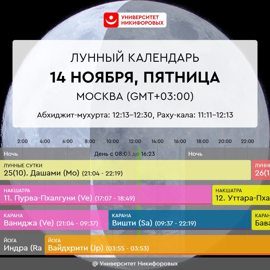 14 НОЯБРЯ, ПЯТНИЦА Последний день этой рабочей недели содержит уже в себе мало настроя на трудовую деятельность – энергетика, скорее, про отдых и наслаждение. Если все же работу и дела не отменить, то уделите больше внимание сегодня своему внешнему виду – ярче оденьтесь, сделайте необычную укладку. Это позволит лучше сконцентрироваться на необходимых задачах. Разрешите себе что-то более дорогое и статусное. Это может быть поездка на такси вместо общественного транспорта или обед в ресторане вместо перекуса на работе или еды дома. Встретьтесь или созвонитесь с друзьями сегодня — найдите время для общения, даже если ваш график загружен. Проявите инициативу и сами выйдите на контакт с теми, с кем давно не общались, но кто по-прежнему важен и ценен для вас. Возможно, кто-то из старых друзей также ждет вашего шага, но не решается первым выйти на связь.
