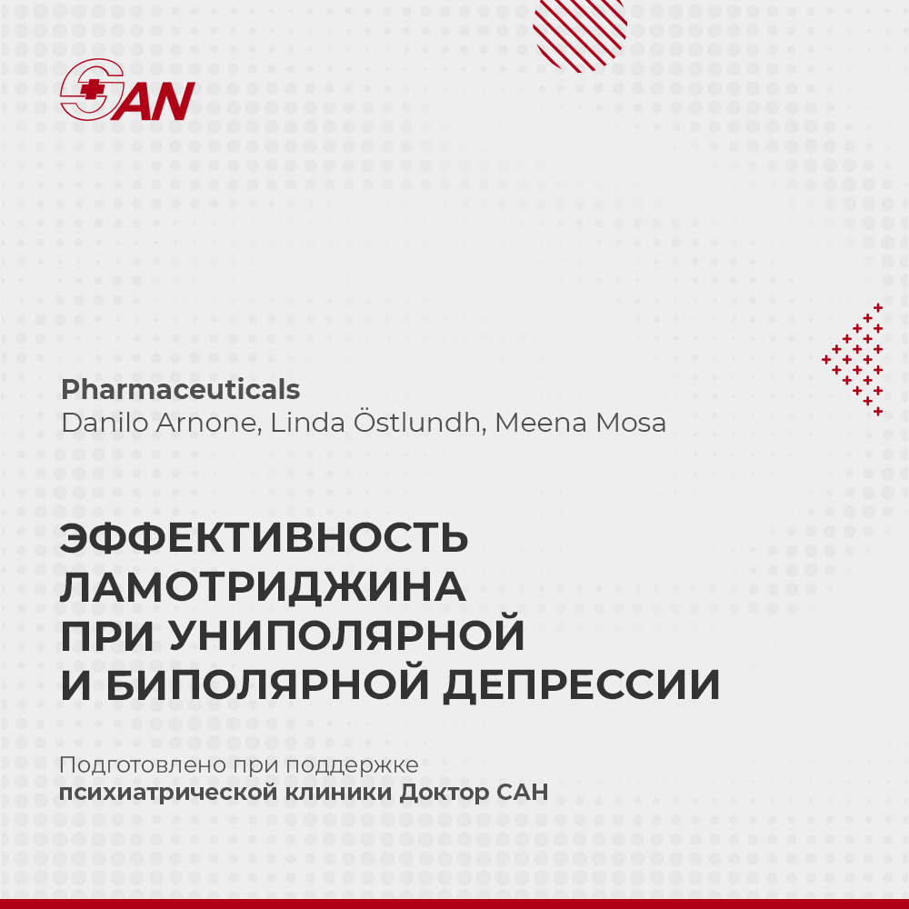 В журнале Pharmaceuticals опубликован систематический обзор и метаанализ 32 рандомизированных клинических испытаний (n = 4577), оценивших эффективность ламотриджина при депрессивных эпизодах. Результаты показали, что ламотриджин достоверно превосходит плацебо в лечении биполярной депрессии и снижает риск рецидива депрессивных фаз в качестве поддерживающей терапии. При униполярной депрессии убедительных доказательств эффективности не получено. Сравнение с литием не выявило преимуществ ламотриджина. Подробнее о депрессии: https://doctorsan.ru/lechenie-depressii