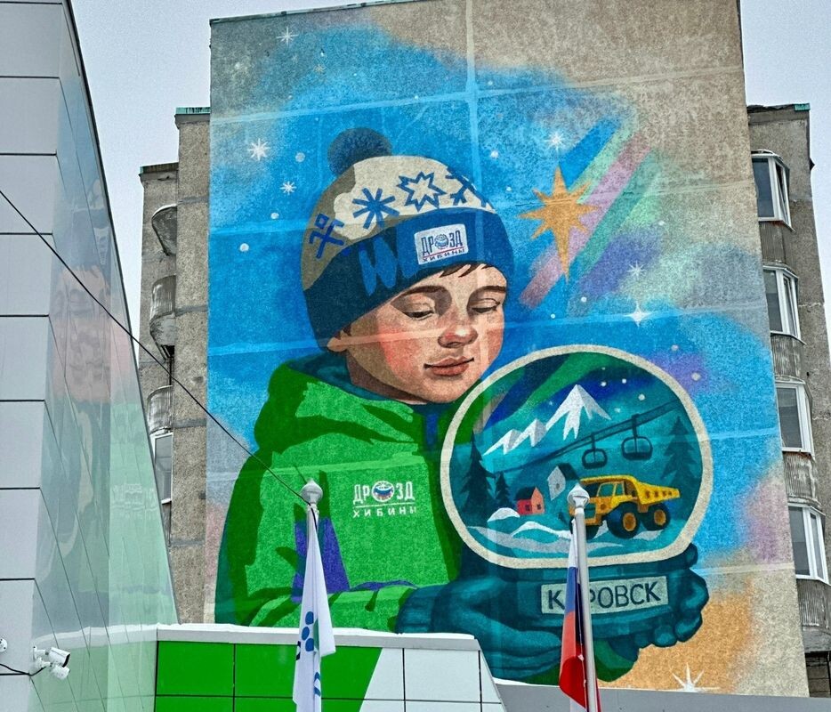 🏙️Новые муралы появились на двух домах в Кировске Мурманские художники Илья Байдак и Евгений Урбанович завершили работу над муралами на торце домов №4 и №6 на ул. Кондрикова. На доме №6 изображены горнолыжные маски, в которых отражаются пейзажи Хибин, лыжные гонки, зимняя рыбалка. Это самый большой мурал в Кировске. А на 4-м доме изображен «дрозденок» - юный воспитанник организации «ДРОЗД-Хибины», в руках у которого хрустальный шар, а в нем - символы города: карьерный самосвал, канатная дорога и заснеженные верхушки Хибин. Фото: администрация Кировска.