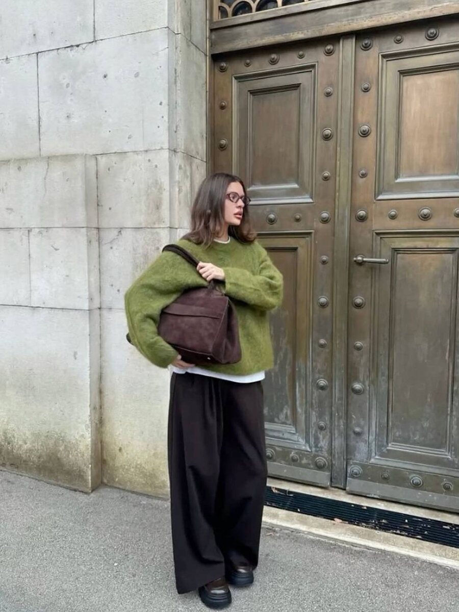 Оливковый — еще один трендовый оттенок этого сезона. В нем отлично смотрятся теплые вещи: трикотажные, шерстяные, кашемировые и даже кожаные. А еще он легко сочетается с другими модными цветами осени и зимы. Grazia
