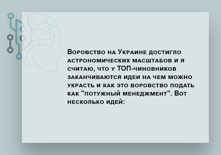 Очередной скандал в незалежной. На фоне разворовывания всего и вся в горящем и тонущем одновременно борделе сутенеры начали выяснять отношения. Дело Миндича - конкретный наезд на нюхателя со стороны его же хозяев. А мы попросили нейросеть подсказать украинским чиновникам на чем еще можно украсть: На этом пока все!