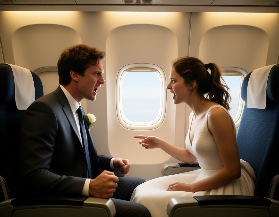В этот момент наше внимание привлекли соседи. Через проход, в двух креслах рядом, сидела молодая пара. Он – высокий, с зализанными гелем волосами, в слишком пафосном и дорогом, но мятом костюме. Она – миниатюрная блондинка в белом, слегка помятом платье, которое, видимо, должно было символизировать свадебное. Молодые люди явно летели в свадебное путешествие. Это было очевидно по их поведению.