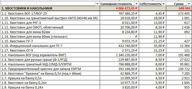 Друзья, мы тут потихоньку подводим итоги производства с ноября 2024 года по октябрь 2025 года. Календарный год закроется только в январе, но уже сейчас можно делать некоторые статистические выводы. Чисто для вашего развлечения посчитали на коленке приблизительную себестоимость каждого изделия, чтобы результаты сообщества выражались не только в количественном, но и в денежном формате. 1️⃣ Хвостовики и накольники За год произведена 191 тысяча накольников для ВОГ-17 и почти 96 тысяч универсальных накольников. Самые примитивные изделия - крестики на УЗРГМ - были произведены в количестве 130 тысяч штук. Почти 2500 боеприпасов ОФСП получили облегченный хвостовик для более успешной стабилизации и уменьшения веса. На производство хвостовиков и накольников неравнодушные граждане "вытащили" из своих бюджетов более 4 миллионов рублей. И это посчитаны только те отделения, которые подавали отчетность (около половины "умельцев"). А ведь не стоит забывать о многочисленных группах занимающихся пе
