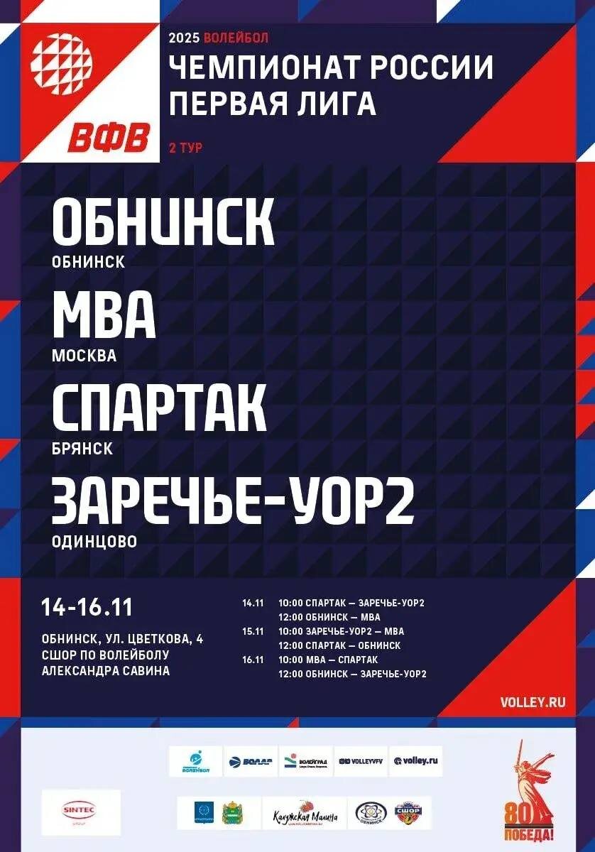 🏐 Волейбольные выходные в Обнинске! Обнинск принимает матчи второго тура Первой лиги чемпионата России по волейболу. Игры пройдут с 14 по 16 ноября в СШОР Александра Савина (ул. Цветкова, 4). Соперницами обнинских волейболисток станут команды «МВА» из Москвы, «Заречье-УОР2» из Одинцово и «Спартак» из Брянска. Юноши из Обнинска сыграют с командами «Сунгирь» из Владимирской области, «Текстильщик-2» из Иваново и «Волжанин-3» из Костромы. Вход на все матчи свободный. Поддержим наших спортсменов! #обнинскспортивный