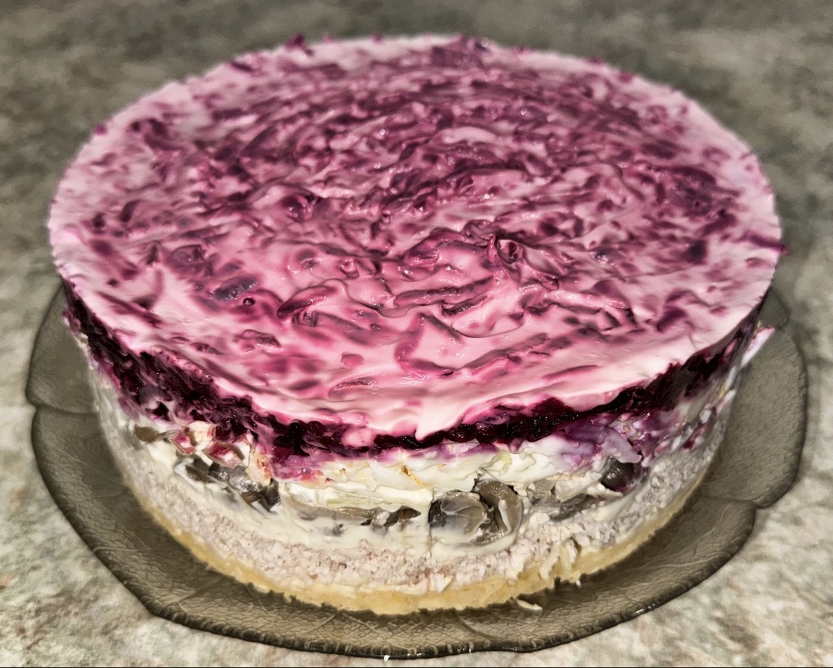Хотите удивить гостей ярким блюдом, которое станет украшением праздничного стола? Тогда приготовьте этот потрясающий слоеный салат с насыщенным вкусом и красивым внешним видом! Он непременно понравится вашим близким и друзьям. Ингредиенты: Этапы приготовления: Подготовка ингредиентов: 1. Свёклу заранее сварить, остудить и очистить от кожуры. 2. Отваренное куриное филе натереть на крупной тёрке. 3. Очистить и нарезать репчатый лук полукольцами. Замариновать. 4. Сыр натереть на мелкой тёрке. 5. Яйца почистить и натереть на крупной тёрке. Сборка салата слоями: 1. Первый слой: на дно салатника выложить сыр. Смазать майонезом. 2. Следующий слой: куриная грудка. Смазать майонезом. 3. Затем идут шампиньоны и лук. Равномерно распределить и покрыть тонким слоем майонеза. 4. Далее выкладываем измельчённые яйца. Добавляем майонез. 5. Последний и заключающий слой это свёкла. Сверху майонез. 6. Украшаем блюдо свежей зеленью укропа и петрушки (по желанию). Советы: - Если хотите п
