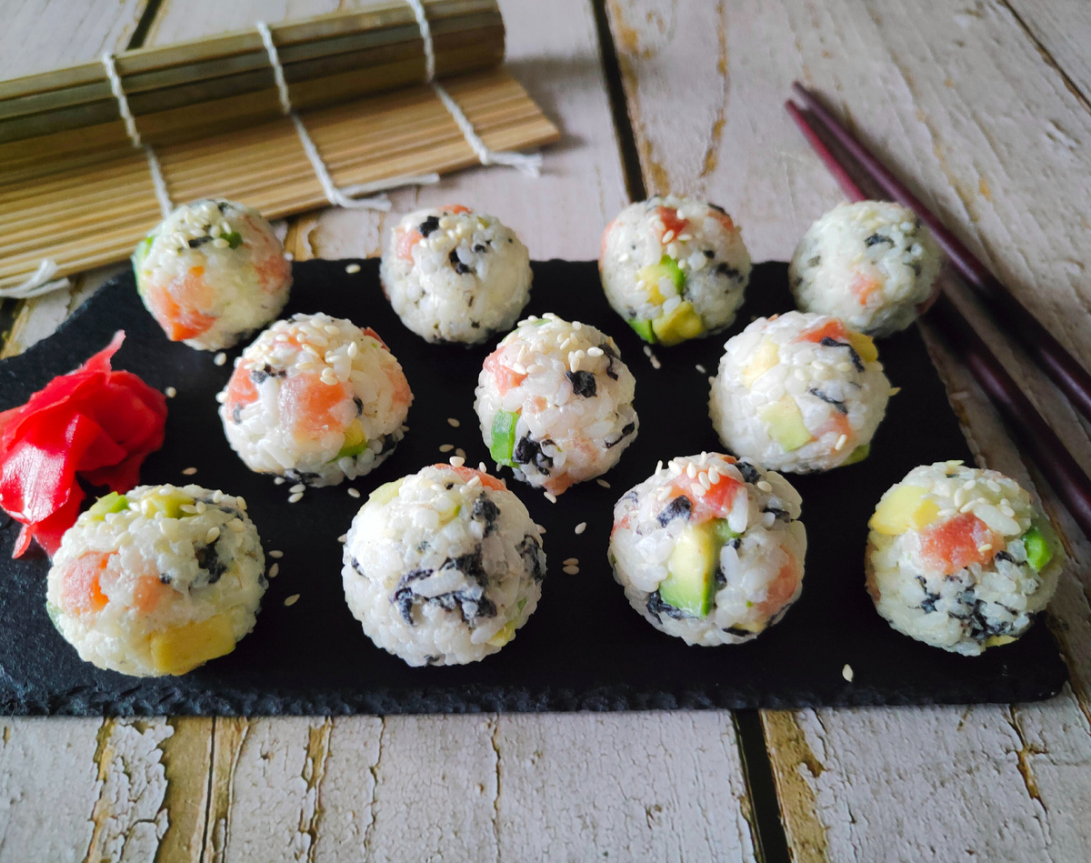 От настоящих роллов "ленивые" отличаются тем, что их не нужно скручивать на макису - специальной циновке: Так что это даже не рецепт - количество ингредиентов здесь не так уж и важно. Главное - сам процесс. А о вкусовых отличиях расскажу в конце публикации. - правильно сваренный и заправленный рис для роллов; - сушёные листы нори; - сливочный сыр без добавок; - слабосолёная рыба или креветки, крабовое мясо и т.д.; - спелое авокадо; - палочки, соевый соус, устричный соус, кунжут, маринованный имбирь, васаби - для подачи; Я решила испробовать два способа. Лист нори разрезаем на 16 равных частей (пополам, ещё пополам и т.д.) ☝️Вместо этого, можно взять чипсы нори в упаковке. Авокадо и рыбу нарезаем кубиками: Выкладываем один листочек на пищевую плёнку шершавой стороной вверх, а блестящей вниз. Влажными руками распределяем рис слоем 3 мм. В центр выкладываем немного сливочного сыра: На сыр кладём кусочек рыбы и авокадо. ☝️Не рекомендую заменять авокадо на огурец - от его сока ро