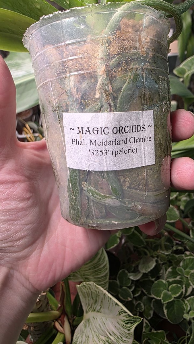 И еще две хороших новости подвалило: Мейдерленд Чамбе распустил первый цветок не пелориком, ну и что, зато в нынешнем дефиците хороших новостей это тоже большая радость) При заказе думала пелор брать или стандарт - одинаково стоили. Ну, орха за меня решила) На фоне листа Биркина натуральный цвет с переливами и зубастая губа) И только-только распускается Локи из Байкальских. Со вспышкой интересно и контрастно получилось. На самом деле он прям очень яркий. А должен быть большой цветок и каскад, а не как у меня. Цветок подрастет, а вот каскадов нема)