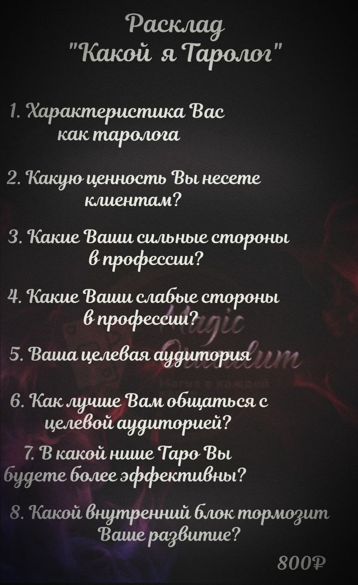 Мои хорошие) Я знаю то, что среди Вас много тарологов❤️ Этот расклад специально для Вас) Но он также подойдет тем, кто думает входить в эту деятельность, уже начал изучать, но не знает куда двигаться дальше) Это даст Вам понимание, подходит ли эта деятельность Вам и насколько Вы готовы к работе с людьми. Расклад даст вам совет как развить свои способности и какие трудности могут возникнуть на этом пути❤️❤️