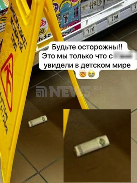 В ответ на пост «Полицию я не видела»: жительница Красногорска нашла свернутую купюру в «Детском мире». Это произошло накануне в детском магазине в ТЦ «Окей» в поселке Путилково, рассказала NEWS.ru женщина. Зная о том, что за сутки до этого в их городе мальчику разорвало руку взрывчаткой, замаскированной подобным образом, она обратилась к администрации магазина. «Мы выбирали дочке игрушку. Я ходила по отделам и увидела, что валяется вот эта, скрученная как втулка, купюра. И сверху этой купюры стояла такая штучка желтая. Там обычно бывает надпись «Осторожно, мокрый пол», — сказала она. ⭕️ Подписаться | Мы в MAX | Буст