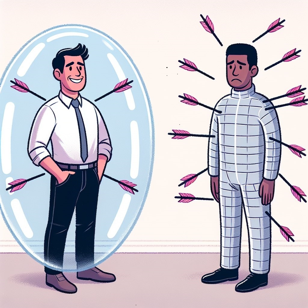 Давайте начистоту: мир иногда напоминает гигантскую токсичную свалку. Коллега-едок, родственник-критик, аноним в интернете... Кажется, они все носят магический артефакт «+100 к пробиванию брони». Но вот секретное знание: токсичность — это не яд сам по себе. Это химическая реакция между ядовитым посылом и нашей внутренней уязвимостью. Представьте, что внутри у нас есть сад. В нем растут наши чувства, самооценка и представления о себе. Сценарий 1: Сад самоценности и здоровой самоиронии. В этом саду чисто, ухоженно, и хозяин (то есть вы) с юморком относится к паре-тройке кривых кустов (своим недостаткам). Он их знает, иногда даже гордо показывает: «Смотрите, какой у меня дурацкий, но такой родной кустик!» 🚫 Прилетает токсичный снаряд: «Ты всегда все делаешь неидеально!» ✅ Реакция сада: «Ага, спасибо, кэп! Я и сам в курсе. Зато как весело получается». Снаряд отскакивает от пушистой живой изгороди самоиронии и падает, не нанося урона. Хозяин сада даже бровью не повел. Вывод: Чем лучше вы