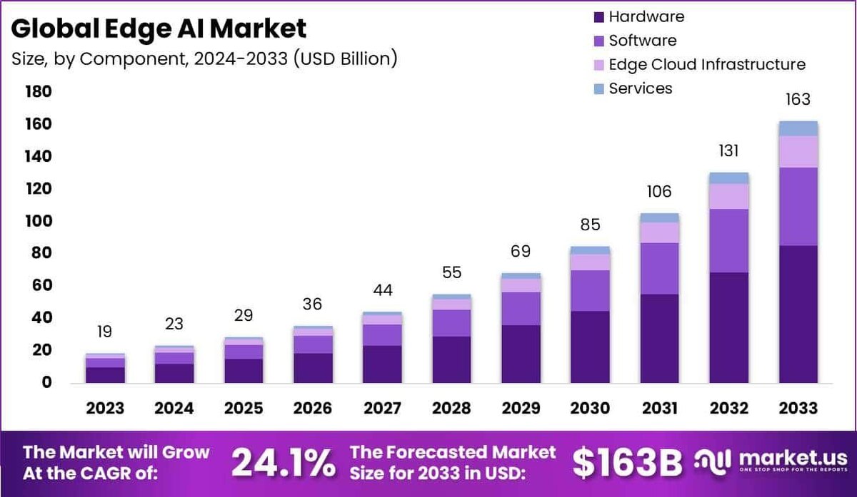 Объем рынка Edge AI чипов, влияние на рост 27,60%