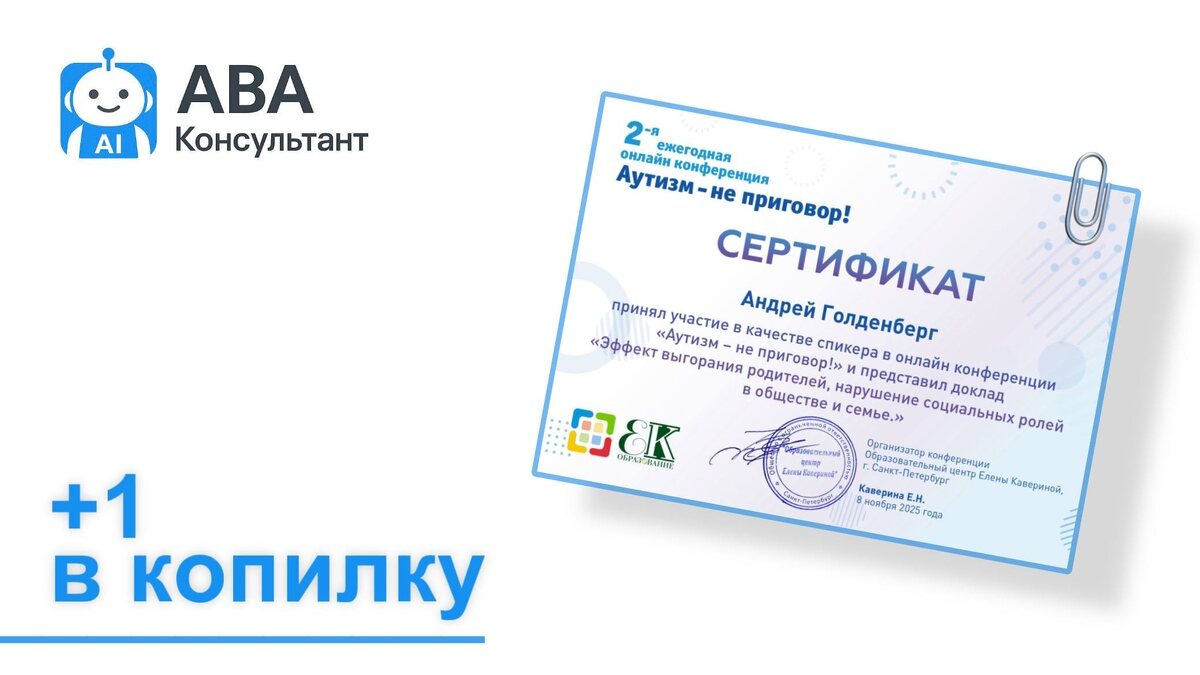 Основатель и руководитель проекта «ABA-бот», Андрей Голденберг, не просто работает в этой теме, а живет ею 🙌🏻 Недавно Андрей выступил на конференции «Аутизм — не приговор!» с докладом о выгорании родителей и том, как важно не терять себя, помогая ребёнку. Он не теоретик и не «спикер по книжке» — он такой же отец, который знает, как это: бессонные ночи, тревога, поиск решений и маленькие победы каждый день! Мы попросили Андрея записать небольшое голосовое для вас — уже выложили его в нашем Telegram канале 🤍 А пока ждём ваших лайков и обратной связи под этим постом!