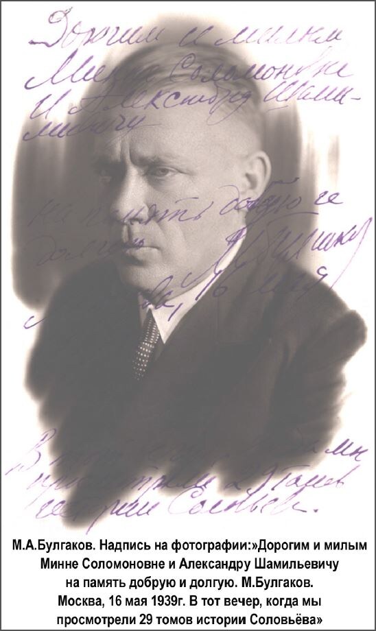 "Общение с Асафьевым — крупным композитором и критиком, теоретиком и педагогом — было интересно и полезно для молодого дирижера, но особое очарование этой работе придало знакомство с автором либретто новой оперы Михаилом Булгаковым. Правда, отец был знаком с ним и раньше: Булгаков часто бывал в Большом, особенно любил «Фауста» и «Аиду» — спектакли, которыми дирижировал Александр Шамильевич. А дома показывал,— говорят, очень смешно,— как «маэстро Мелик» прогуливается по улице Герцена, поигрывая ненужной тросточкой. Но за время совместной работы это знакомство перешло в близкую дружбу. Часто, закончив спектакль, Александр Шамильевич надевал пальто поверх фрака и отправлялся, один или с женой, в гости к Булгаковым. В образе жизни, в личности Михаила Афанасьевича отца пленяло сочетание бедности — и щедрости, душевной глубины — и острой игры ума, пристрастия к интеллектуальному соперничеству, грустной проницательности — и беззаботного веселья. Любовь к творчеству Михаила Афанасьевича оте