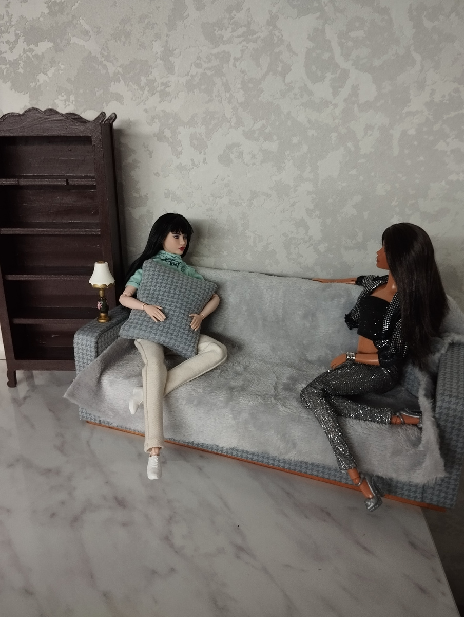 Приветствую всех 👋 Обожаю когда имя куколке приходит на ум до ее появления 😉 так произошло и сейчас . Прошлой ночью не спалось , зато в голове появился диалог для вампирского вечера , и появилось имя ЛИНдА!! 😈😉 Итак Линда поехала ко мне от соххобита Наташеньки 🤗🤗❤️ @Tiffany & friends . Обычно я отправляла своих кукол в новые дома , а тут у меня кукла от соххобита 🤗 ♥️ как говорит сама Наташа " кукла несёт энергию человека " , а я желаю думать что с куклой делишься частичкой себя 🤗♥️♥️ и все счастливы ❤️ Итак Линда приехала не одна , а привезла с собой приданое !! Покажу часть ...😉 Диван! настоящий офигенный диван !!! Не из коробок как это я делала 🤣 а настоящий добротный диван ❤️❤️❤️ на заднем плане шкаф 😉 и ещё есть ... Мы это вам покажем потом ... 🫣🤭 Встречала Линду Каро . Так получилось что она у меня уже несколько дней живёт на кухне . Мы с ней обещаем , мы ужинаем . Мне очень нравится она Но мы все помним , что в кукольном мире не бывает ни к