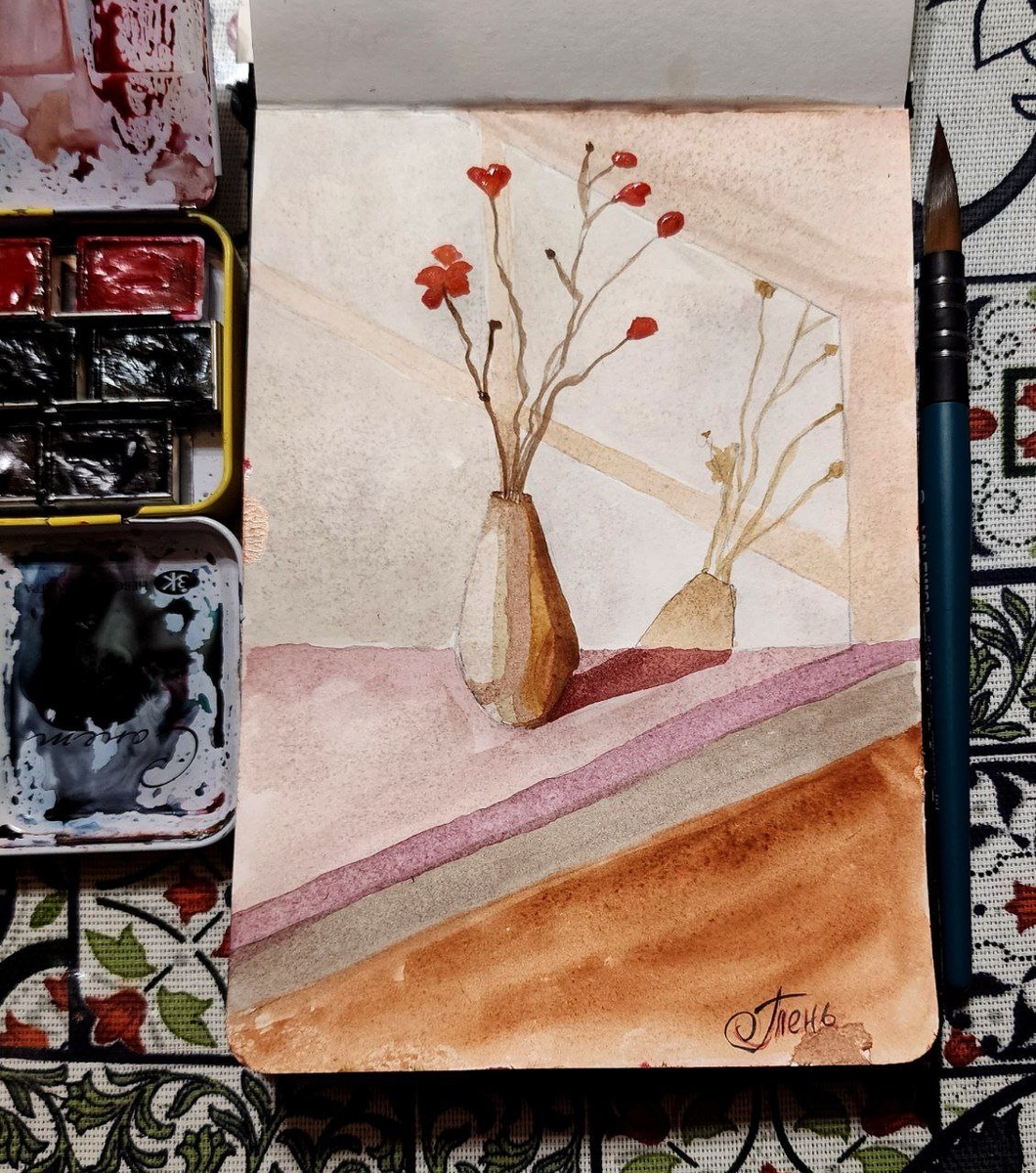 В ответ на пост 🎨 День 13. ТЕМА — «ТЕНИ» Сегодня у меня получился двойной день — и по смыслу, и по технике 😊 Я рисовала тени акварелью и стилусом, в двух совершенно разных мирах. 🪶 Первая работа — акварельная ваза. Тёплая, прозрачная, почти медитативная. Свет скользит по стене, а тень ложится рядом — спокойно, как отражение тишины. 📱 Вторая — цифровая девочка с цветком. Нежная и милая… но её тень — лохматая и с битой 😄 Похоже, даже светлые души умеют постоять за себя. Свет и тень — как две подруги: разные, но неразделимые. ✨ Интересные факты о тенях: • У теней нет собственного цвета, но они кажутся слегка синими — это небо добавляет оттенок. • В полдень тени самые короткие — вы почти исчезаете. • А на Луне тени абсолютно чёрные — ведь там нет воздуха, чтобы их смягчить. Сегодняшний день — о том, чтобы увидеть вторую сторону света и, может быть, подружиться со своей тенью 🌗 #день13 #челлендж #рисуйснами #тени #играсосветом #светтень #акварельидиджитал