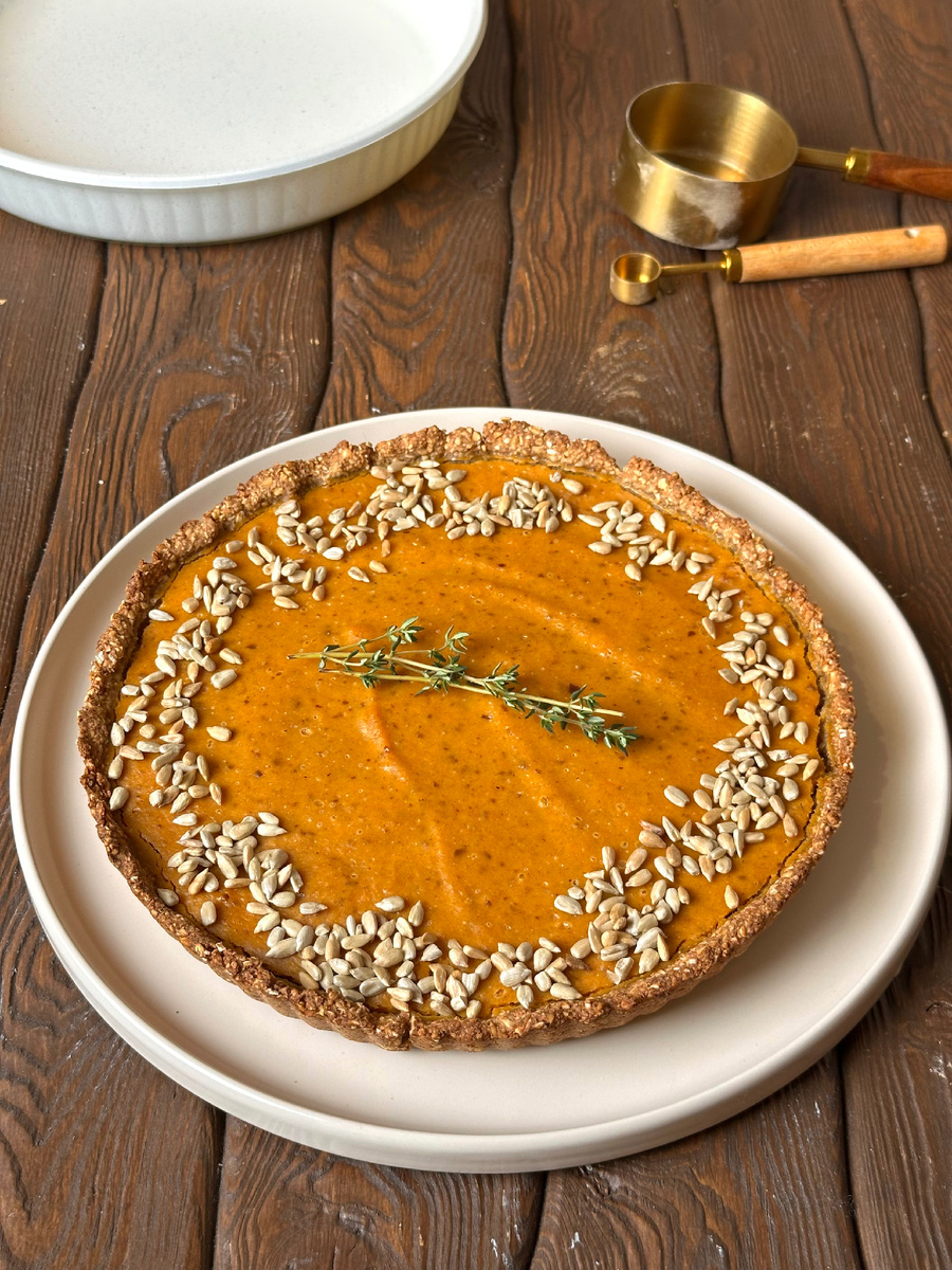 Осень - время, когда на кухне становится особенно уютно. Когда за окном дождь, а дома пахнет тыквой, корицей и чем-то родным. Сегодня готовлю свой любимый тыквенный пирог. Ароматный, нежный и совсем без белого сахара. Основа: 165 г овсяных хлопьев (измельчить мелко в блендере) 45 г муки из зеленой гречки 40 г фиников (сорта мазафати, вес уже без косточек) 60 г воды 20 г растительного масла (любое жидкое) Начинка: 350 г запеченной тыквы (ароматной и желательно сладкой) 60 г фиников (сорта мазафати, вес уже без косточек) 2 яйца С1 (я использую только белки) Пряности (корица, мускатный орех, имбирь, кардамон) Просто, натурально и с душой. Попробуйте и, может быть, этот пирог тоже станет вашим уютным осенним ритуалом.