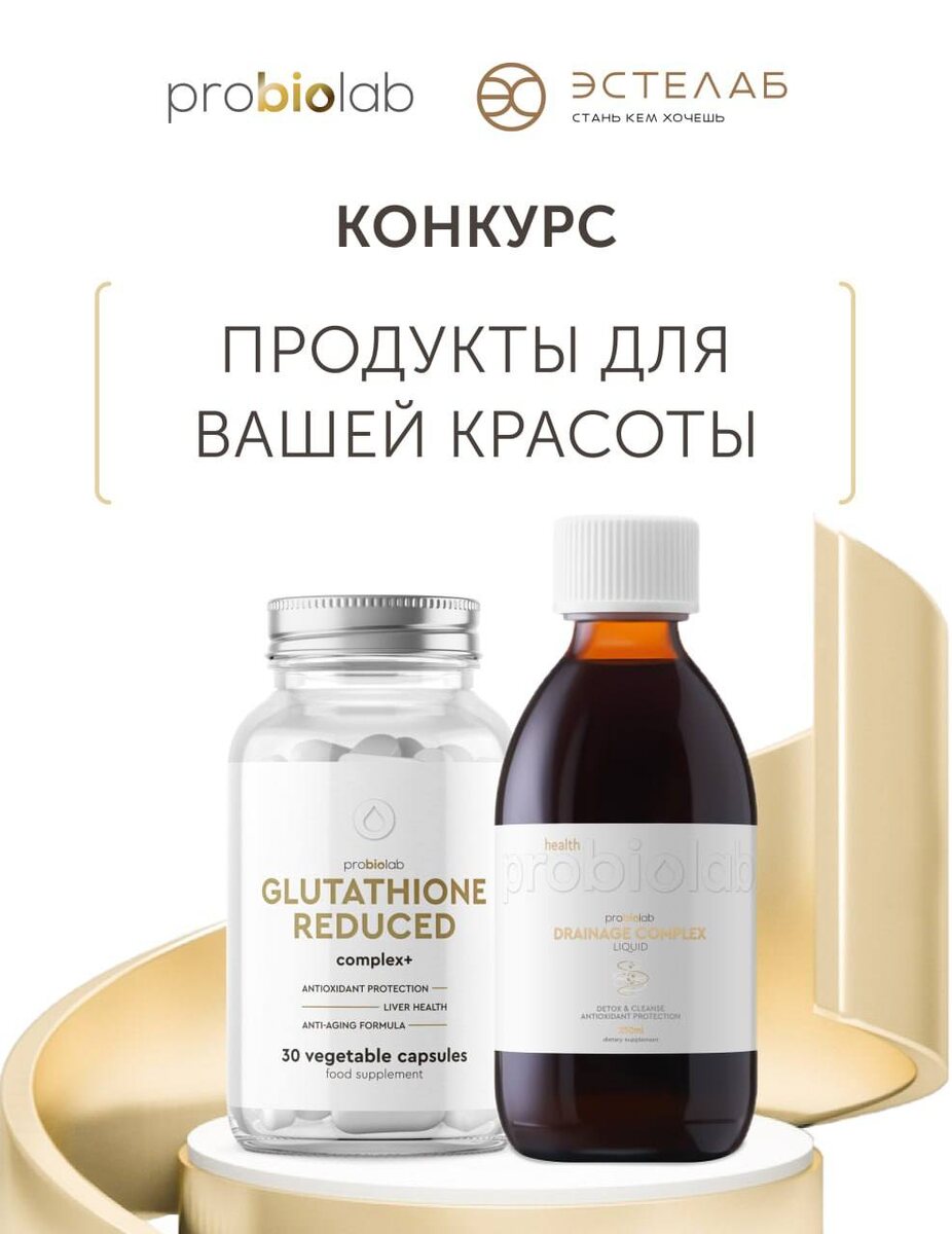 РОЗЫГРЫШ ПОДАРКОВ ОТ Probiolab! 🎉 🎁 Glutathione Reduced complex+ — мощный омолаживающий комплекс, работающий на клеточном уровне. 🎁 Дрэйнейдж Комплекс — лимфодренажный комплекс против отеков. Условия участия: 1️⃣ Подпишитесь на Эстелаб и Probiolab 2️⃣ Нажмите «УЧАСТВУЮ» в телеграмм канале Эстелаб 3️⃣ 2 победителя будут выбраны случайным образом Сроки конкурса: 13.11. до 16.11 📅 Итоги будут подведены 17 ноября Красоты и долголетия вместе с Эстелаб и Probiolab!