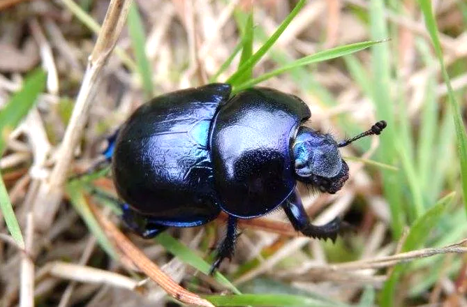 Навозник весенний: маленький труженик природы Навозник весенний (лат. Trypocopris vernalis) – это не просто жук, а настоящий герой своего маленького мира, играющий важную роль в поддержании чистоты и плодородия почвы. Несмотря на свое скромное название, этот жук обладает интересной биологией и поведением, которые заслуживают внимания. Внешний вид: блестящий и крепкий Навозник весенний – это жук среднего размера, обычно достигающий 10-15 миллиметров в длину. Его тело крепкое, овальное, с хорошо выраженными сегментами. Главная отличительная черта этого жука – его блестящий, металлический окрас. В зависимости от освещения, он может переливаться от темно-синего до зеленовато-бронзового оттенка. Этот блеск обусловлен особой структурой хитинового покрова, который отражает свет. Голова: Небольшая, но крепкая, с хорошо развитыми челюстями, предназначенными для разгрызания и переноски пищи. Грудь: Широкая и выпуклая, несущая три пары сильных ног. Передние ноги жука часто имеют зубчатые края, чт