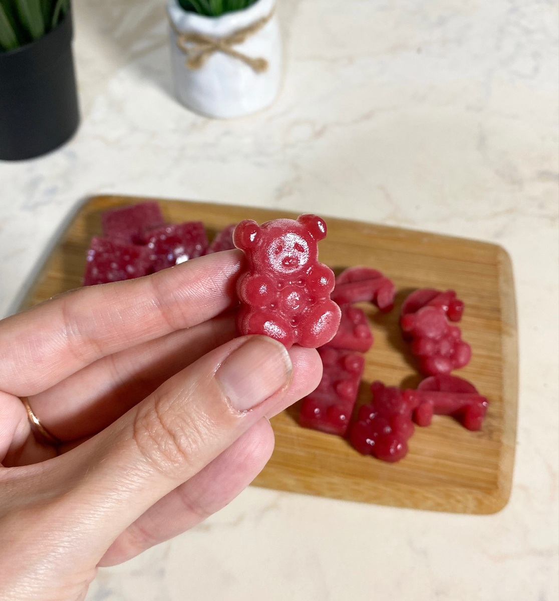 Всем привет, друзья! Знаете, мой ребенок обожает мармелад! В любом виде! Поэтому недавно я решила приготовить его сама, делюсь рецептом с вами. Здорово так же то, что по этому рецепту мармелад можно хранить в морозилке и доставать, когда вам будет нужно 😊 Итак, нам понадобится: 1️⃣ Сахар 70 г 2️⃣ малиновое пюре 130 г 3️⃣ Вода 110 г 4️⃣ Пектин 9 г 5️⃣ Глюкозный сироп 45 г Приготовление: Все готово! Такой мармелад придется по вкусу Вам и вашим деткам!