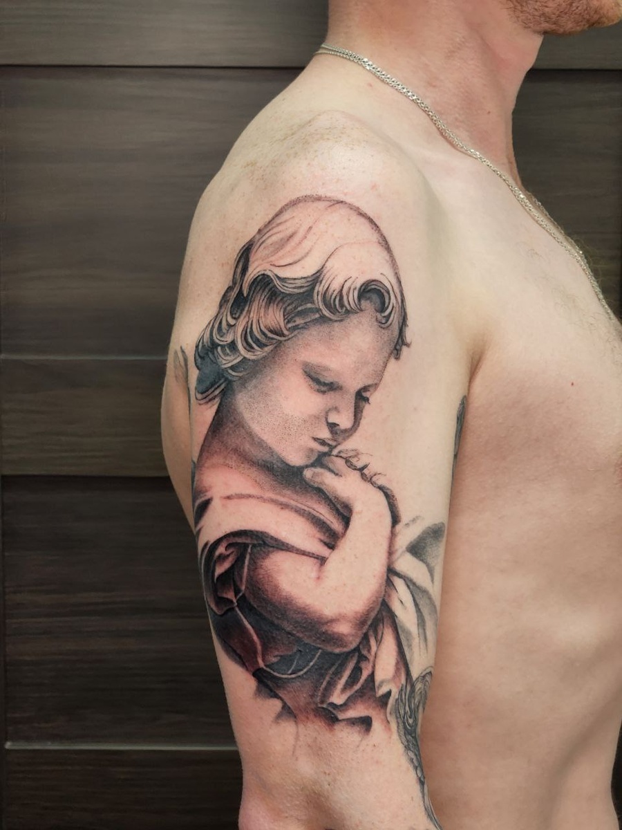 🧡🧡🧡🧡🧡🧡🧡 Приходят за новой тату, за правом высказаться. Оставить боль в кабинете, преобразив в искусство. Друг – частый гость. Приходит с вопросом, с пустотой внутри, с ноющей болью. Во время сеанса разговоры о наболевшем. Клиента пробирает озноб. Согреваю горячим кофе, укутываю в мягкий плед. Задремал на кушетке. После сеанса ушёл с улыбкой на лице. ✔️ После такой работы чувствую себя счастливым человеком.