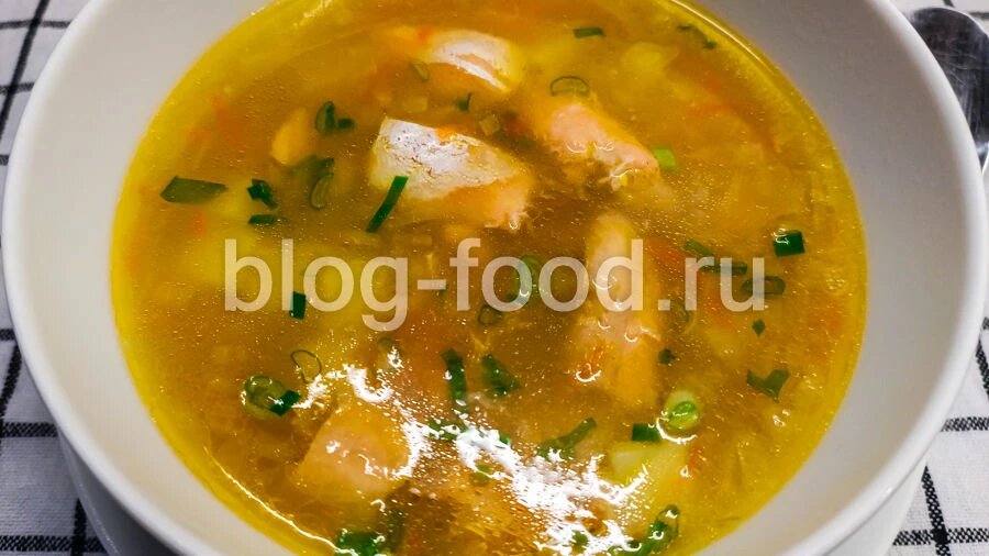 Всем привет. Сегодня приготовим очень вкусную уху на основе всяких обрезков, оставшихся после разделки форели. 13 лет назад мы уже варили подобный суп, но там была сёмга и вообще, повторение — мать учения ). Голова, плавники, шкура, брюшки и так далее — всё пойдёт в дело! Продуктовый набор: Из головы удаляем жабры. Всё рубим на куски помельче, филе (если есть) снимаем с кожи, режем кубиком, откладываем в сторону. Промываем рыбу, заливаем её 2 литрами холодной воды, солим, добавляем толчёный душистый перец, лавровый лист, доводим до кипения, варим на маленьком огне полчаса. Картошку и лук режем кубиком, морковь натираем на крупной тёрке, перловку промываем. Обжариваем лук на небольшом количестве растительного масла в течение минуты. Добавляем морковь, жарим ещё пару минут. Бульон процеживаем, рыбу разбираем. Кости и всё лишнее выбрасываем, нормальные кусочки откладываем в сторону. Бульон доводим до кипения, загружаем картошку с перловкой, варим 15 минут, добавляем морковь с луком, вари