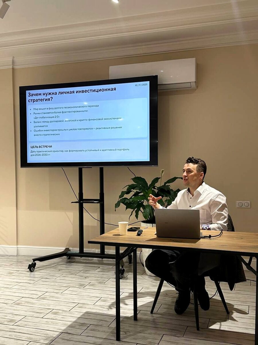11 ноября мы провели встречу в закрытом клубе Yan Club. Это премиальное бизнес-сообщество, объединяющее предпринимателей и топ-менеджеров, которые хотят масштабировать бизнес и укреплять связи. 🎙Спикером вечера выступил Дмитрий Михеев, директор по развитию бизнеса Cresco Finance, который более 9 лет работает с реальными портфелями предпринимателей и частных инвесторов. Дмитрий рассказал гостям, зачем нужна личная инвестиционная стратегия и дал ориентиры по формированию устойчивого портфеля на 2026–2030 годы. Вместе с участниками мы обсудили рыночные тренды, рост спроса на юань и структурные изменения экономики, сравнивали стратегии: защитные, смешанные, агрессивные. 📌Гости встречи поделились волнующими их запросами: от сохранения капитала до подготовки к крупным покупкам. Капитал сохраняется благодаря дисциплине, а растёт через стратегию. Мы благодарны участникам за серьёзные вопросы и возможность обменяться полезным опытом. ⚡️Cresco Finance продолжит делиться инвестиционными инсайт