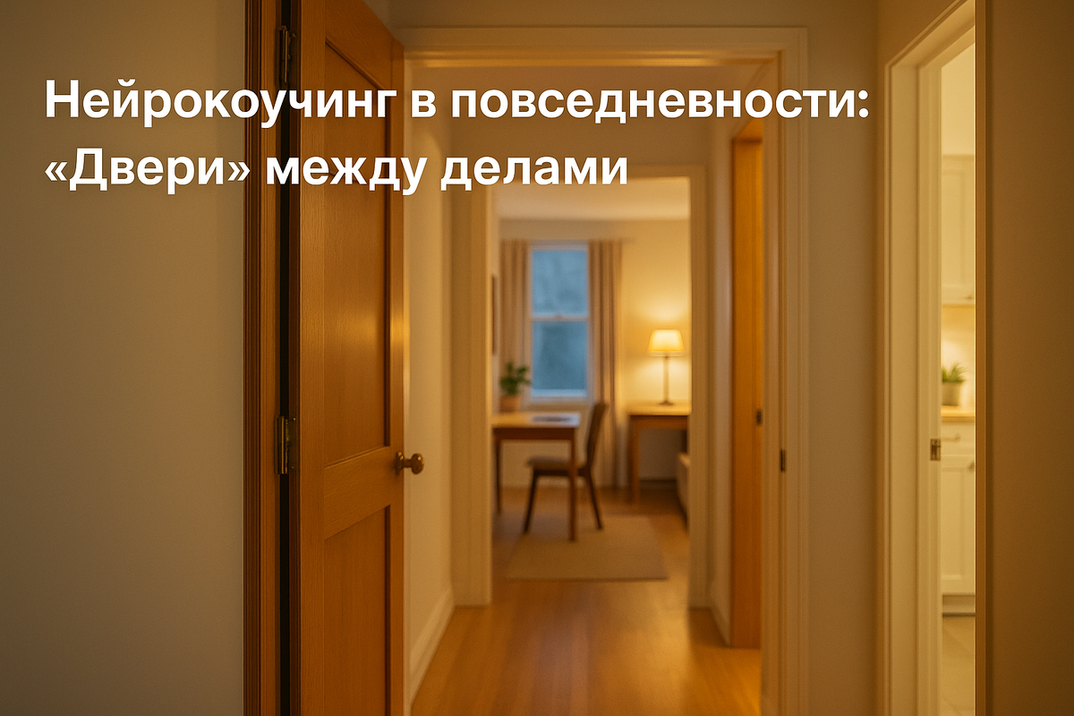 День устроен как квартира: комнаты означают роли и занятия, а между ними есть проходы. Когда «дверей» нет, мы бежим из одной сцены в другую напрямую и цепляем одно за другое. Мысли из прошлого дела тянут назад, новое не входит полноценно, энергия утекает. Небольшие переходы это не роскошь и не медлительность. Это способ вернуть ясность: завершил, перешёл, начал. Так становится легче слышать себя и других.