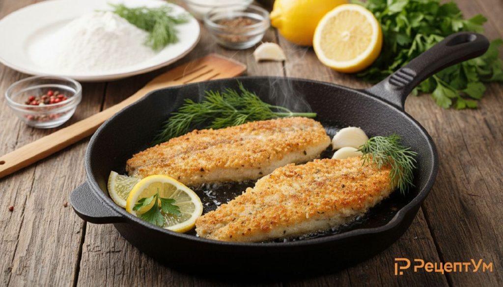 Главный секрет сочного минтая — не пережарить! Рыба готова, когда мякоть легко разделяется вилкой на белые хлопья. Переворачивайте только один раз — частые переворачивания разрушают нежную структуру.Если филе тонкое, уменьшите время жарки до 2-3 минут с каждой стороны. Толстые куски можно довести под крышкой на минимальном огне ещё 2-3 минуты.Для пикантности добавьте в панировку сухие травы — прованские травы, орегано или тимьян. А для остроты — щепотку кайенского перца!