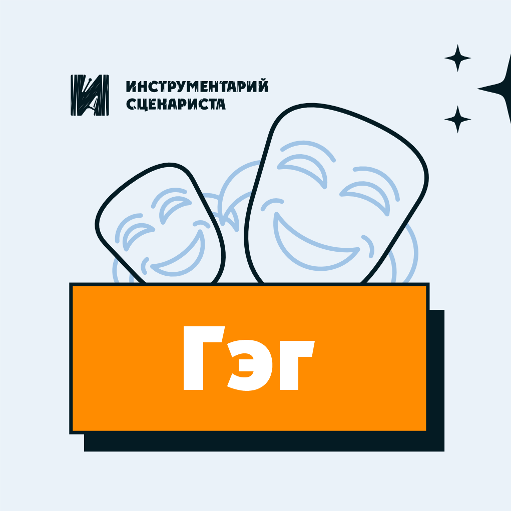 Гэг — это визуальная шутка, понятная без слов. Комический эффект создают действие, мизансцена, предмет, монтаж, ракурс. В отличие от репризы (текстовой шутки), гэг работает прежде всего визуально. Часто длится считанные секунды.