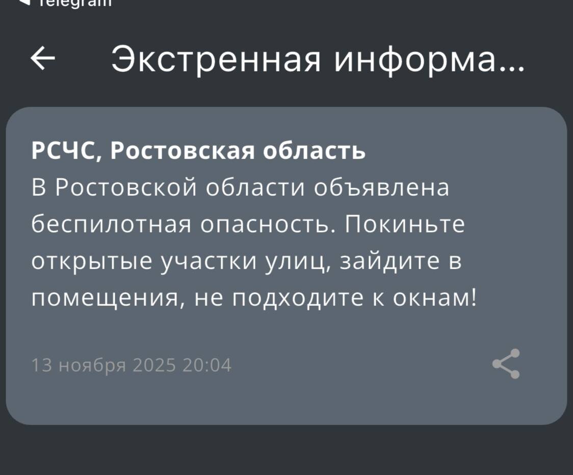 ‼️ В Ростовской области объявлена беспилотная опасность