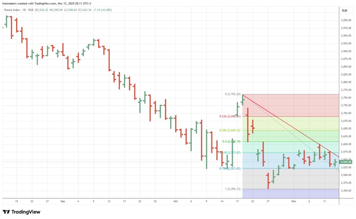 ❗️13 ноября российский фондовый рынок подрос, индекс МосБиржи укрепился на 0,28% до уровня 2543,36