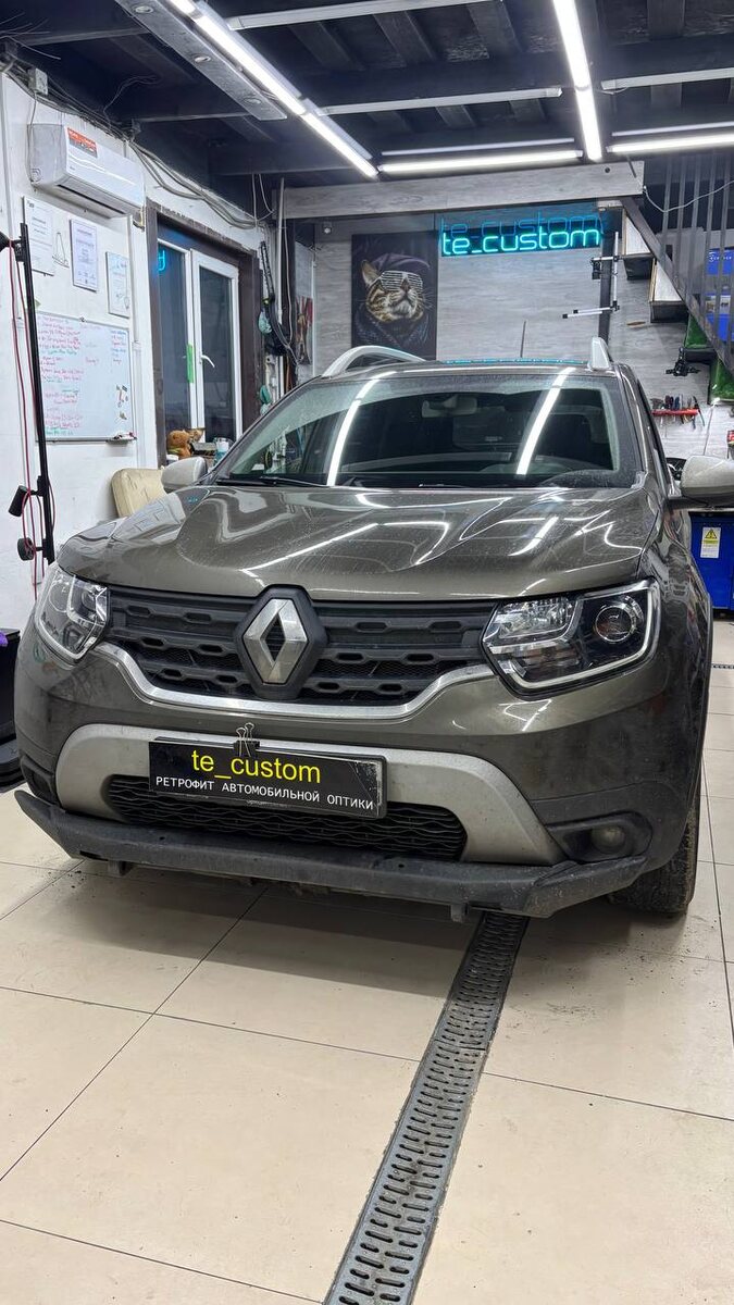 Renault Duster 🚜 ✅установлены bi led модули ⁉️взамен штатной галогеновой лампы ✅корпуса/фурниура естественно отмыты 👌 ✅❤️окрас половины чашки фары (она же база под установку линз) в черный матовый 🫡где то пришлось поработать болгаркой - для корректной работы корректора на результат 🧐