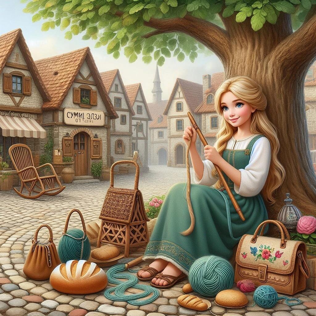 В славном городе Мастеров, где улицы вымощены булыжником с узорами, а воздух пахнет свежей выпечкой и древесной стружкой, жила девушка по имени Эльза. И была она не простой девушкой, а Вязальщицей Сумок. Эльза не вязала носки или варежки. Она вплетала в свои творения удивительные вещи. В её руках обычная шерсть превращалась в прочнейшую нить, а на длинной спице рождались сумки такой красоты и удобства, что о них слагали легенды. Были у неё сумки-невидимки для рыночных покупок, которые, опустев, складывались в ладошку. Были сумки-кошели для дров, что сами держали форму и никогда не рвались о сучки. А для девушек на выданье она вплетала в узор секретные кармашки, куда можно было спрятать записочку от возлюбленного или засушенный цветок. Но самая большая магия Эльзы была в том, что она ввязывала в свои сумки частичку души будущего хозяина. Прежде чем начать работу, она долго беседовала с человеком, расспрашивая о его мечтах, заботах и радостях. И потому сумка у почтальона никогда не пр
