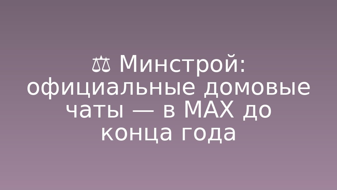 Министр строительства и ЖКХ Ирек Файзуллин на заседании Совета при Совете Федерации заявил, что до конца года в каждом МКД должны быть созданы и закреплены официальные домовые чаты в мессенджере МАХ с переводом коммуникаций из неофициальных каналов. Ведомство готовит регламентацию цифрового взаимодействия с жильцами; эксперты оценивают сроки как требующие продления.