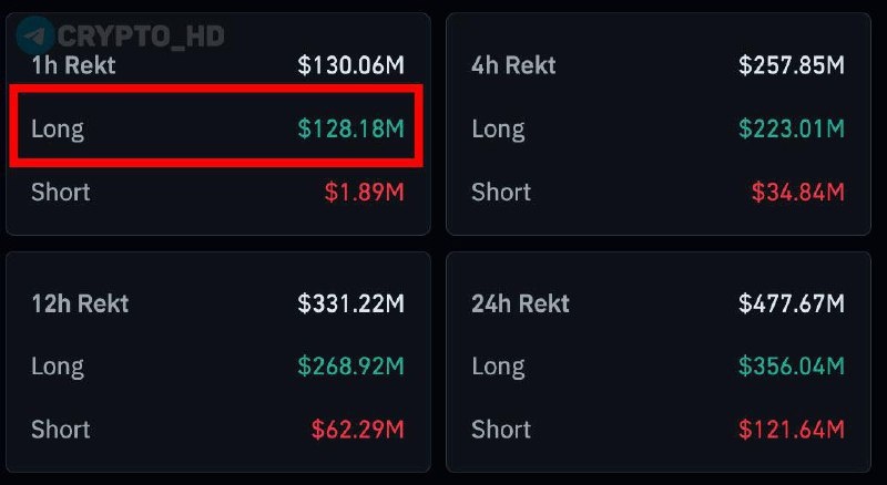 😭 Сoinglass: За 1 час ликвидировано LONG-позиций на $128,000,000+… Cryptо Headlines