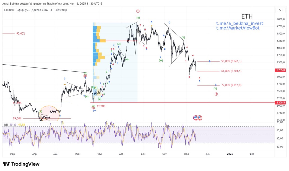 #ETH Движение во второй волне [2] развивается двойным зигзагом. Формируется волна А of (Y) of [2]. Не является ИИИ 💪 БОЛЬШЕ разметок в Закрытом канале: Бот Закрытого Канала (подписаться из-за границы, пишите личным сообщением)