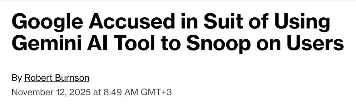 Недавно Google решили прикрутить к своим сервисам Gemini: если коротко, то чат-бот начал проводить «глубокие исследования» не только в интернете, но и в личных документах пользователей. Всё верно: у Gemini появился доступ к Gmail, файлам в Drive и сообщениям Google Chat. То есть к вашим документам, презентациям, таблицам, PDF-файлам. Это, якобы, должно было упростить работу внутри своих документов, вплоть до того, что можно сделать из доков подкаст. Не прошло и месяца, как фичу прикрутили, и компанию обвинили в незаконной слежке за пользователями. В иске утверждается, что включение помощника произошло без уведомления и согласия пользователей, то есть тайно. Да и о проблемах подобного доступа мы писали неоднократно: персонализированный маркетинг с использованием ИИ, слив информации, слежка за пользователем. Но для Google именно так выглядит будущее. @lobushkin