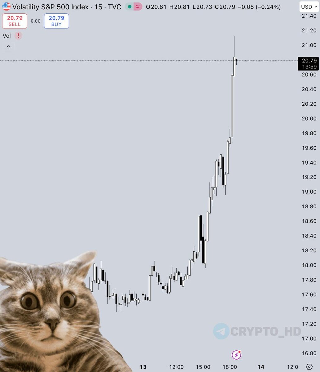 🔪 Индекс страха и волатильности фондового рынка США (#VIX) в моменте… Crypto Headlines