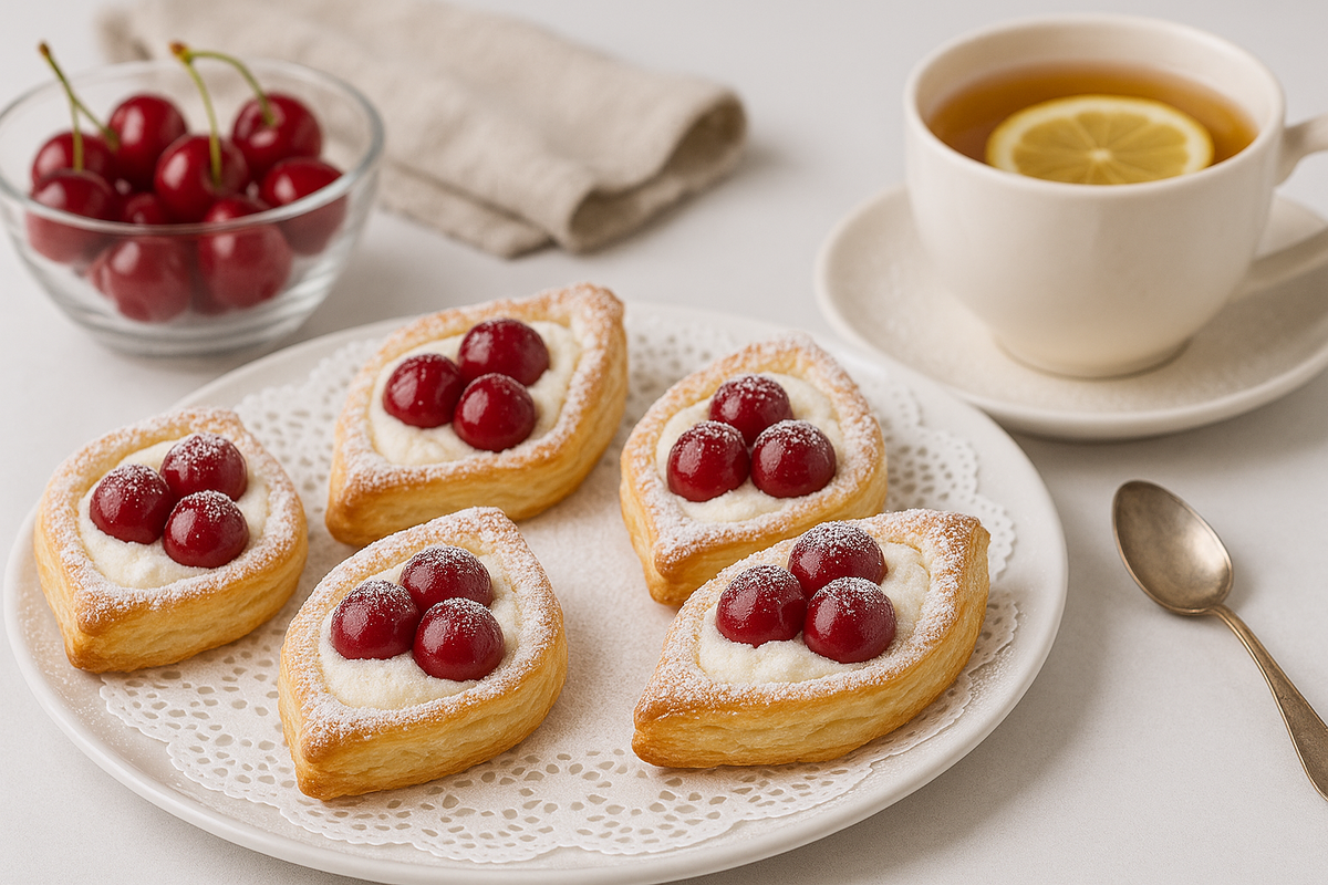 Воздушная слоёнка с нежным кремом и сочной вишней внутри. Хрустящая корочка, мягкая середина и идеальный размер — один укус, и хочется ещё. Универсальный десерт для гостей и уютных вечеров. Нажмите, чтобы забрать рецепт. Калорийность на 100 г: 245 ккал БЖУ: белки — 6.1 г, жиры — 12.4 г, углеводы — 27.8 г Ингредиенты (на 10–12 лодочек): Как приготовить: Получаются маленькие, румяные, ароматные слойки — аккуратные, красивые и очень праздничные. То, что улетает с тарелки первым. Если понравился рецепт — сохраните себе, попробуйте приготовить и вернитесь за новыми быстрыми десертами.