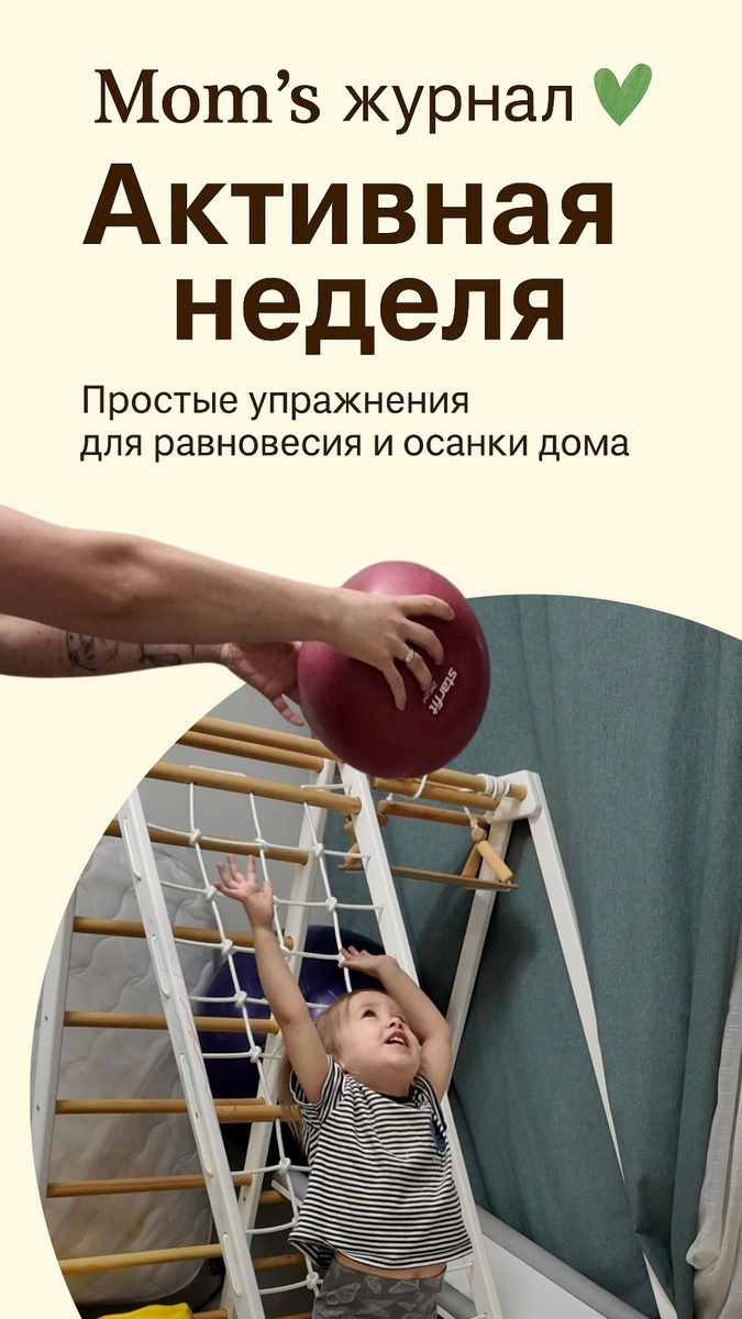 🏋♀️ День 1. Начинаем с корпуса Сегодня стартует наша Активная неделя! Будем 7 дней двигаться, играть и замечать, как через простые игры растёт уверенность малыша. И начинаем с самого важного — со спины, корпуса и осанки. Это база всех будущих движений: ходьбы, прыжков, равновесия и даже речи. Игры для осанки и корпуса 1⃣«Шаг по дорожке» Можно нарисовать или наклеить на пол линию из скотча. Малыш идёт по ней обычным шагом, затем боком или на носочках. Больше идей показала в видео. Что даёт: ровный корпус, внимание и равновесие. 2⃣«Обезьянка» Ходим на ладонях и стопах, с прямыми ножками. Что даёт: включаются плечи, спина, корпус — отличный старт силы. 3⃣«Катание на пледе» Посадите малыша на плотный плед, слегка тяните вперёд-назад, вокруг. Что даёт: укрепляет корпус, развивает чувство центра тела и вестибулярную систему. 4⃣«Тянемся к солнышку» Держим игрушку или шарик на разной высоте — выше головы, на уровне груди, в сторону. Малыш тянется вверх и немного в стороны все