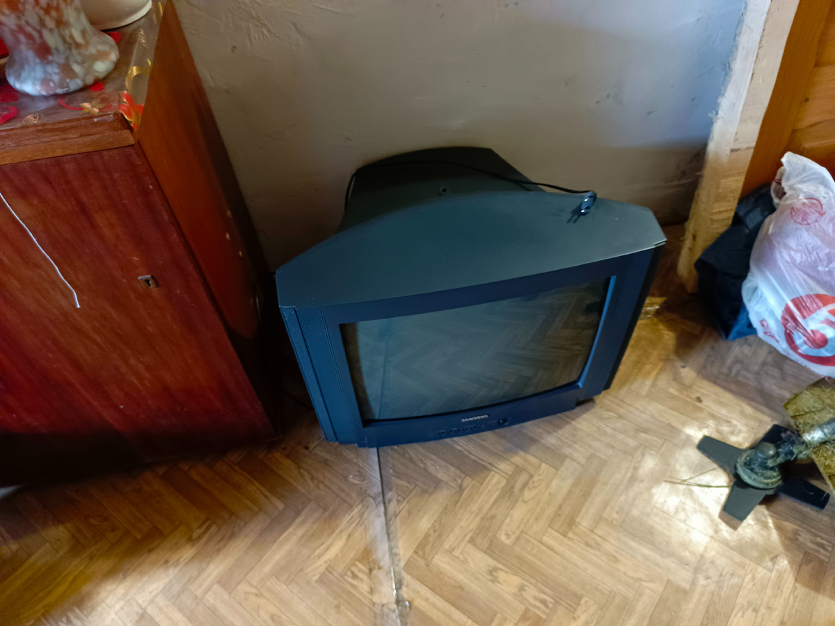 Во время передачи теливизора вместе с хозяйкой находился муж, ну я и спрашиваю их, может ещё от чего нибудь хотите избавится...Мужчина подумал секунду и ушёл на кухню, ворачивается держа в руках точильный станок эпохи СССР, вот говорит: от отца остался, не знаю рабочий или нет