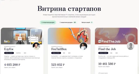 Инвестируйте в IT‑стартапы, которые изменят мир - гласит главная надпись на сайте, кто не в курсе это сайт, который позволяет обычным людям без больших средств стать инвесторами за чуть больше 5 000р.