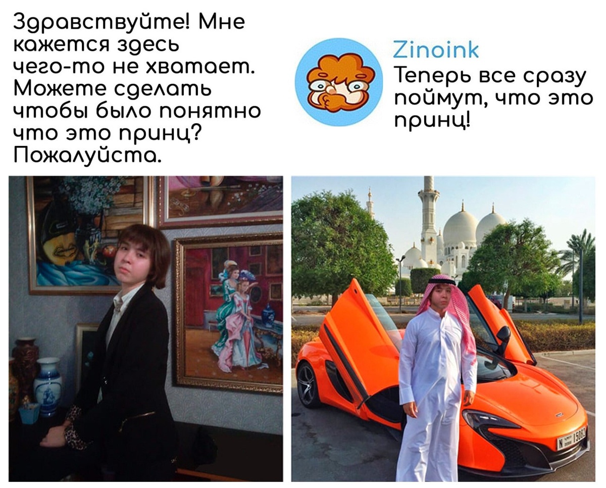 Сегодня пятница – а значит в эфире рубрика «Фотошопы». Фотошоп доказывает: на фото можно быть кем угодно – хоть атлетом, хоть путешественником, хоть человеком, который умеет улыбаться на камеру естественно) Главное – вовремя вспомнить, где кнопка «Сохранить», а то реальность норовит вернуться! Не верите? Присылайте свои карточки с просьбой, что хотите исправить – и я это сделаю с большим юмором! А пока давайте полюбуемся на героев этой недели. И не забывай, что еще больше классных шуток без рекламы и цензуры ты найдешь с подпиской премиум. Кто в современном понимании женщин – принц на белом коне? Забудьте про златовласых всадников на белых конях. Теперь это парень, который не просто найдёт хрустальную туфельку, но и сразу закажет ей идеальную пару на маркетплэйсе с бесплатной доставкой до замка). А если брать кого-то калибром покрупнее – то вот он: почти король! Не знаю, как вы – а я боюсь летать. Мой мозг в самолёте делится на две части. Первая – взрослая и разумная утверждает: «Стат