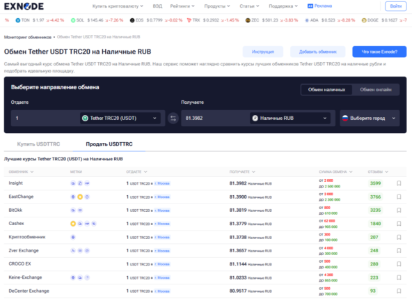 Начните с оценки репутации обменной компании и уровня защищённости её офисов. Предпочтение стоит отдавать сервисам, которые известны своей надёжностью и конфиденциальностью. Найти подходящий офлайн крипто обменник удобно с помощью мониторинга Exnode — эта площадка собирает проверенную информацию о популярных обменных точках. На Exnode можно заполнить заявку на обмен прямо на странице выбранного сервиса, что ускоряет процесс и позволяет избежать лишних контактов.