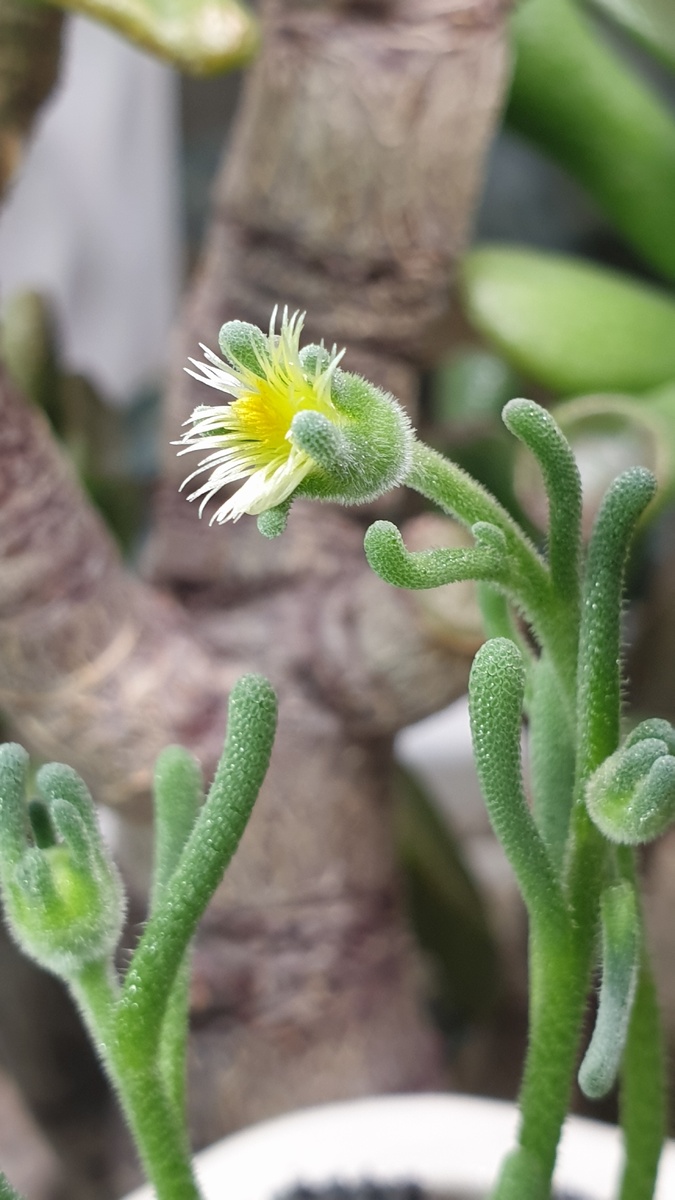 Phyllobolus tenuiflorus — это каудексный суккулент семейства Аизовые, который ценится среди коллекционеров за необычный внешний вид и длительное цветение. Это многолетнее травянистое растение с характерным утолщённым подземным каудексом, используемым для запаса влаги. Род Phyllobolus включает около 38 видов, большинство которых распространены на юго-западе Африки, преимущественно в Намибии и Южной Африке. Phyllobolus tenuiflorus был первоначально описан как Sphalmanthus tenuiflorus, его научная классификация прошла пересмотры. Растение вырастает до 3 см в высоту, формируя крупный каудекс диаметром до 12-14 см. Листья расположены супротивно, с выраженным килем и пупырчатой поверхностью, окрашиваются под светом фиолетовым оттенком. Цветёт долго — до трёх месяцев, цветки зелёно-жёлтые, тонкие, многочисленные и декоративные, часто используются как «одуванчики» в коллекциях. Phyllobolus tenuiflorus предпочитает яркое освещение и быстро дренированную бедную почву. Оптимальная температу